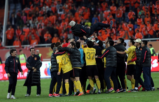 2013年11月9日,全国目光汇聚于此。埃尔克森的首开记录和全员筑起的铁血防守,让广州恒大两回合内3-3战平首尔FC,凭借客场进球优势成为改制后第一支加冕亚冠荣耀的中超球队。2015年11月,凭借埃尔克森的会心一击,广州恒大在主场击败迪拜青年国民,三年内第二次封王亚冠。随后的第二次世俱杯征程,郜林助攻郑龙、于汉超抹过阿尔维斯等名场面又在世界舞台上展出。那段摧枯拉朽的征程中,不少人有意或无意地将俱乐部的成功,与中国足球的崛起画上了等号。这当然不正常,但当时压抑和疲软许久的中国足球行业和市场,的确需要一个标杆。
