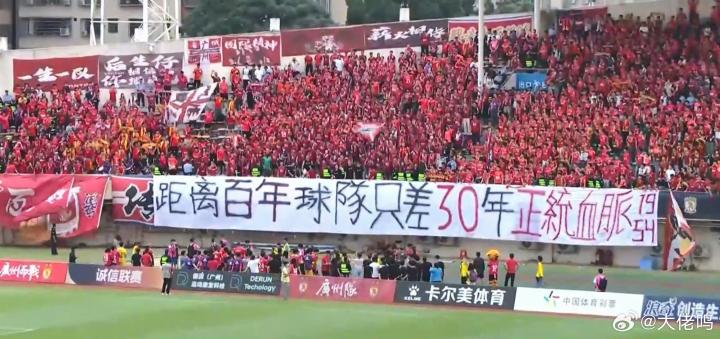 正统,是中国球迷格外强调的一个概念。“九三正统”的旗帜,就飘扬在八万人体育场的看台上;八冠王的传承,也出现在梭鱼湾浅蓝幕布滚动的Tifo上。同样的,近两年当广州队走到存亡关头时,“广州只有广州队”“请留住广州足球唯一火种”“距离百年球队只差30年正统血脉”之类的口号,也成为一个活下去的动力,或者说支撑的理由。