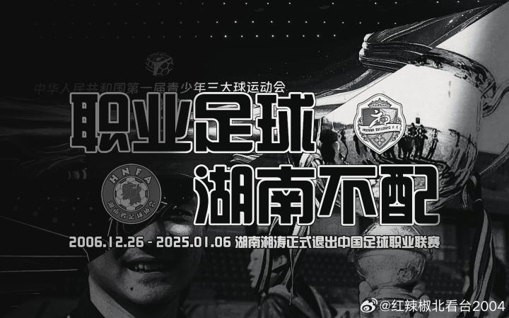 北京时间1月6日,中国足协发布了2025赛季职业联赛准入资格名单,湖南湘涛足球俱乐部未获准入资格并宣布解散。对此,湘涛球迷协会“红辣椒北看台”表态,希望有关部门彻查俱乐部未过准入的原因。