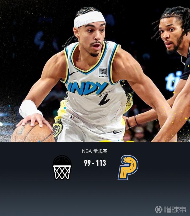 篮网多人缺阵,步行者113-99轻取篮网,哈利伯顿23分8助