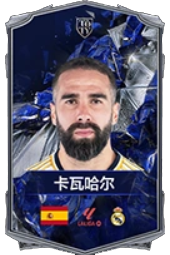 卡瓦哈尔在皇马队套的使用率颇高,他的速度快、回防能力强,可以很好地应对对手的边锋突破。卡瓦哈尔还有锁头传中,进攻表现让人满意。缺点是身材小,在游戏里面会吃亏一些,这是各个赛季卡瓦哈尔的通病。
