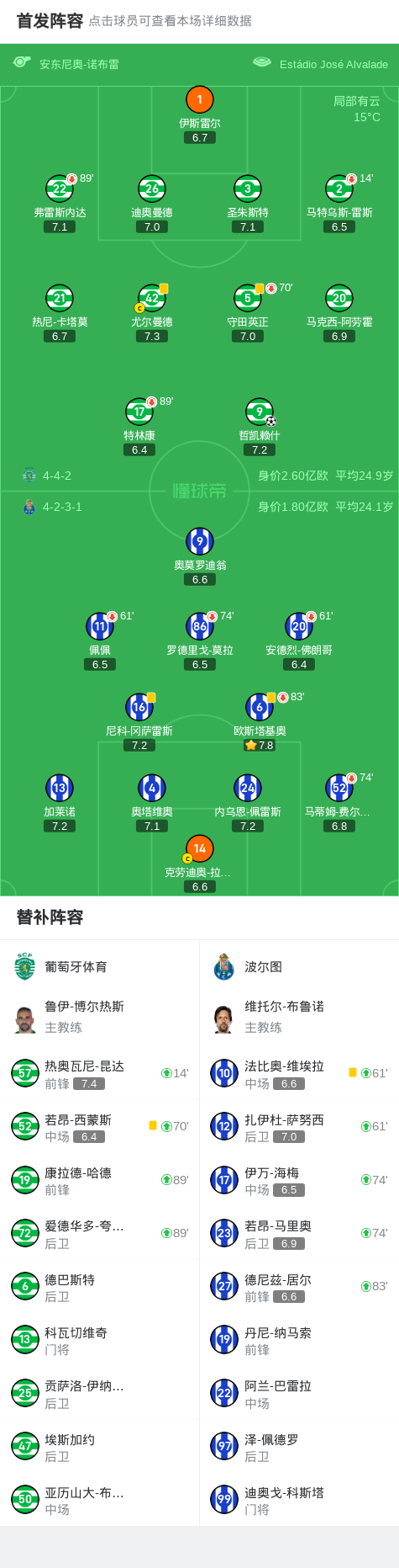 在葡萄牙联赛杯半决赛中,葡萄牙体育迎战波尔图。上半场,两队均无建树。下半场,热奥瓦尼-昆达送出精彩助攻,哲凯赖什破门。全场比赛结束,葡萄牙体育1-0战胜波尔图成功晋级决赛。