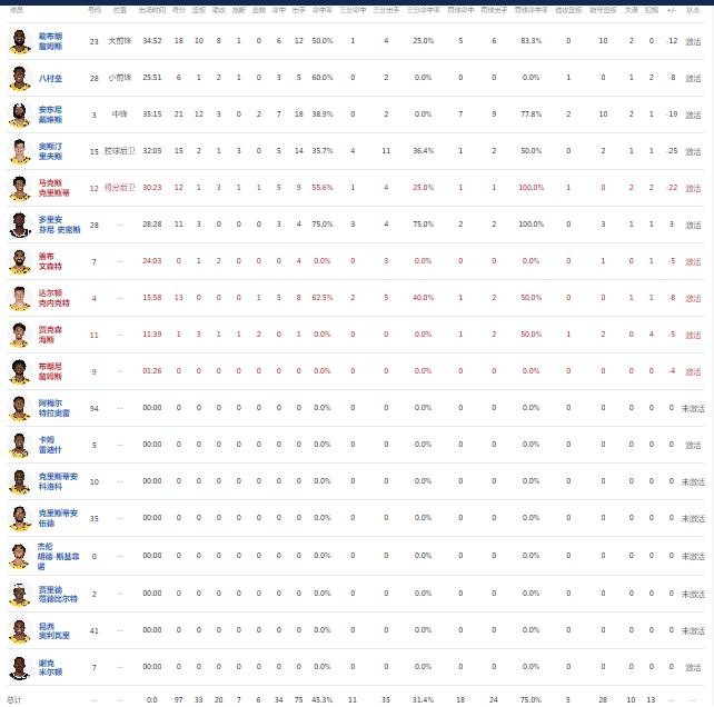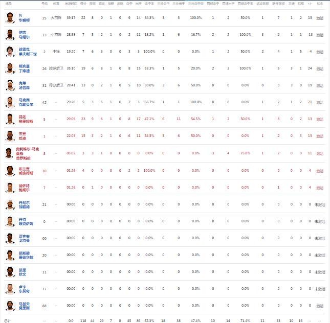 球员全场数据