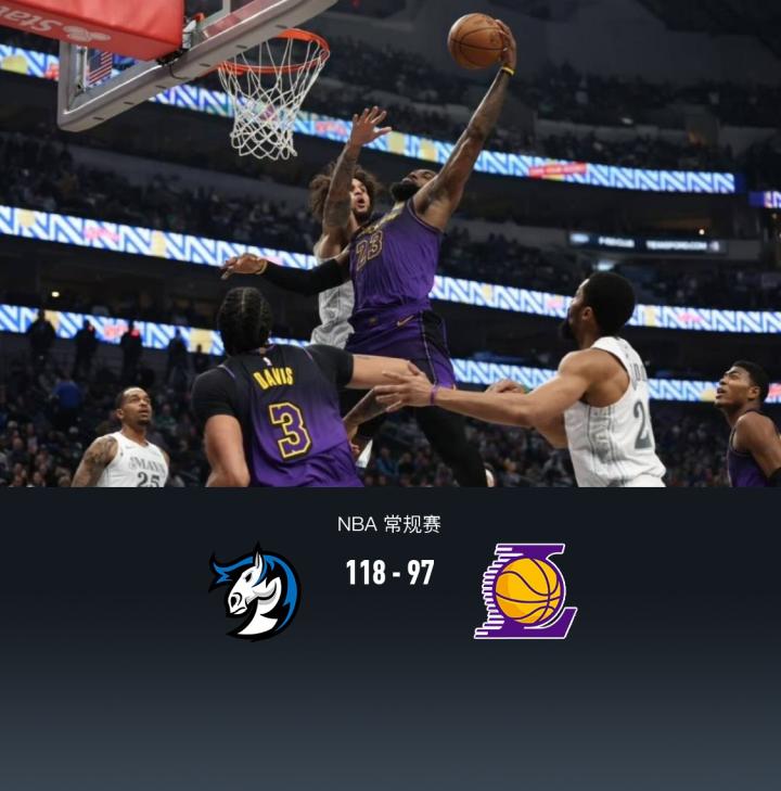 湖人97-118爆冷不敌无东欧独行侠!詹姆斯18+10+8,浓眉21+12