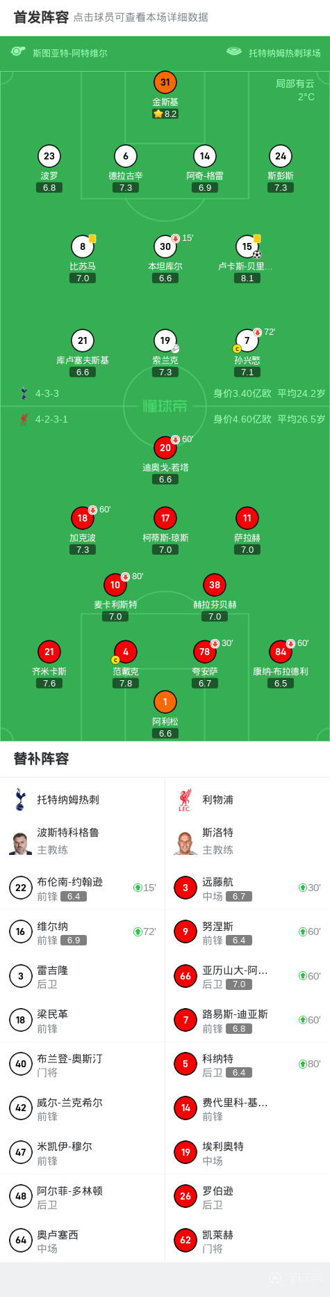 第73分钟,维尔纳替补出场,替下孙兴慜