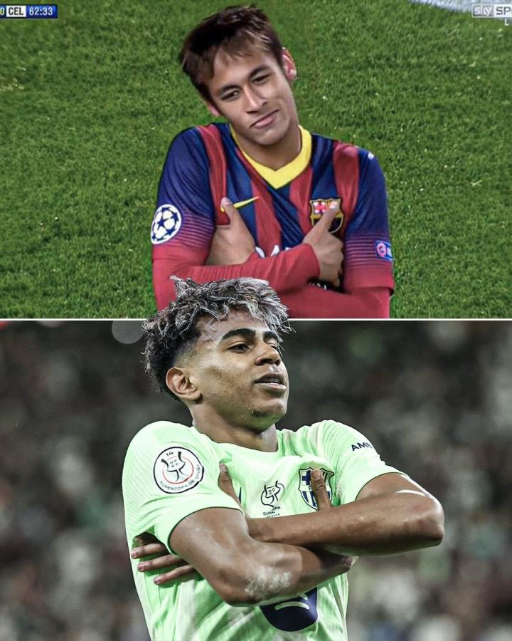 双手抱胸庆祝是模仿内马尔?亚马尔曾说内马尔一直是他的偶像