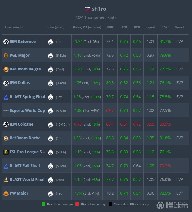 稳定强大,sh1ro当选HLTV年度TOP6,全年1.19Rating&7获EVP