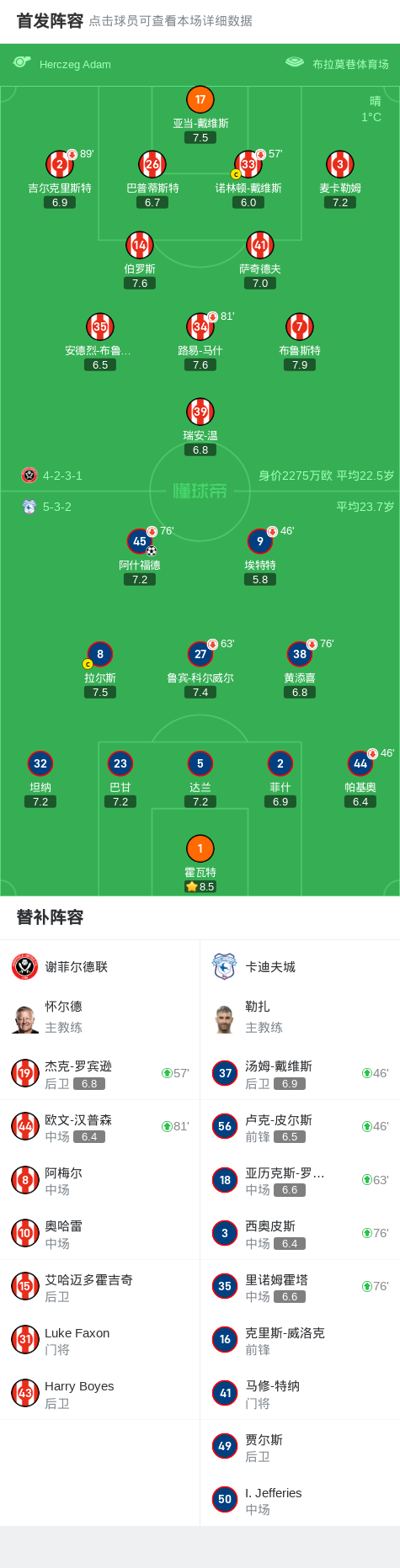 卡迪夫城客场1-0险胜谢菲尔德联,阿什福德打进唯一进球战报bot @懂球帝2025-01-10 04:58北京时间1月10日英格兰足总杯 第三轮,谢菲尔德联对阵卡迪夫城。卡迪夫城阿什福德破门。最终比分谢菲尔德联 0-1 卡迪夫城。点击查看本场比赛详细数据>>点击查看足总杯完整积分榜>>精彩瞬间第19分钟,卡迪夫城球员阿什福德打入一球。 球队阵容 技术统计 展开更多