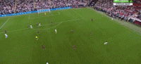 第50分钟,看着都疼,卡马文加和穆里奇争顶时头部相撞