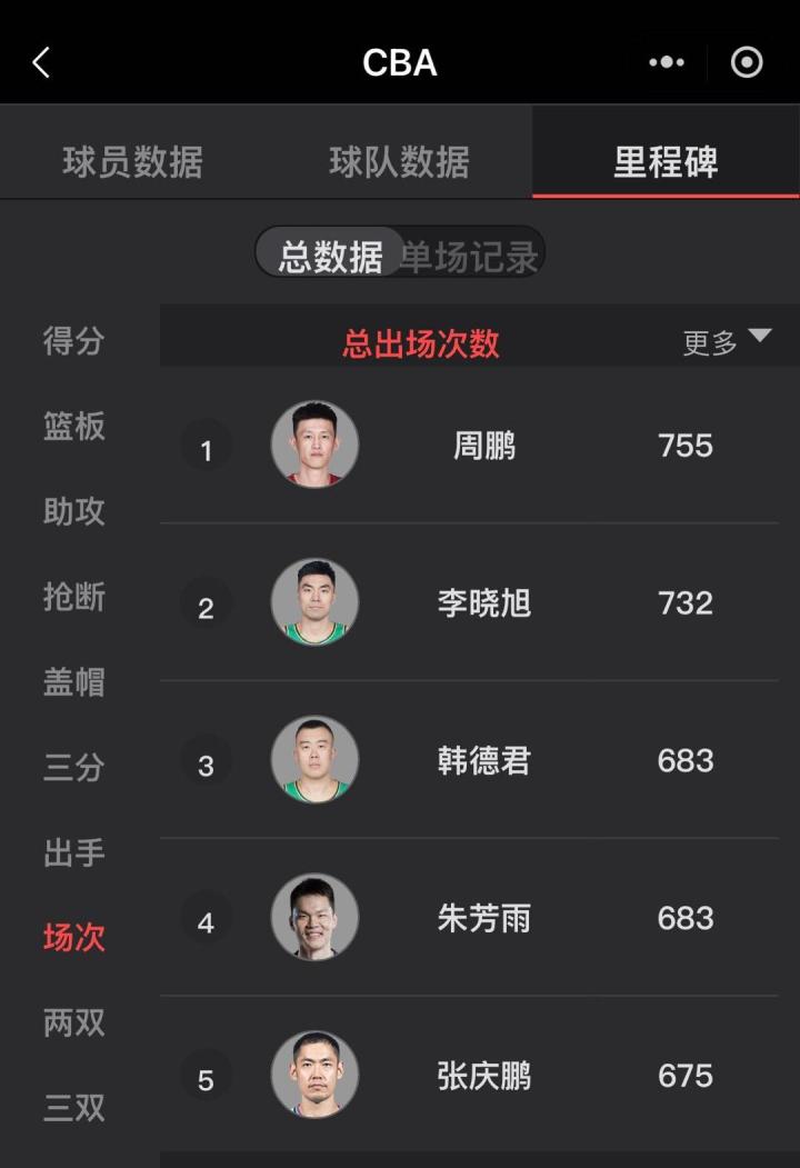 韩德君完成CBA生涯第684次出场,超越朱芳雨独享历史第三位尼古拉约基奇 @懂球帝2025-01-10 20:03北京时间今日,辽宁男篮在主场对阵北控男篮。比赛进行到第一节,辽宁男篮中锋韩德君替补出场。这样一来,韩德君在CBA的总出场数来到了684场,超越广东男篮名宿朱芳雨,独享历史第三。在韩德君前面的两位分别是自己的队友李晓旭,以及深圳男篮的周鹏,三人目前都仍在征战CBA联赛。展开更多