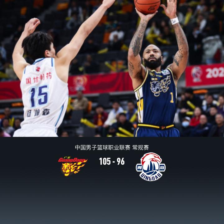 北京时间1月10日CBA常规赛,广东东阳光对阵青岛国信制药。半场广东47-56青岛,最终广东105-96青岛。