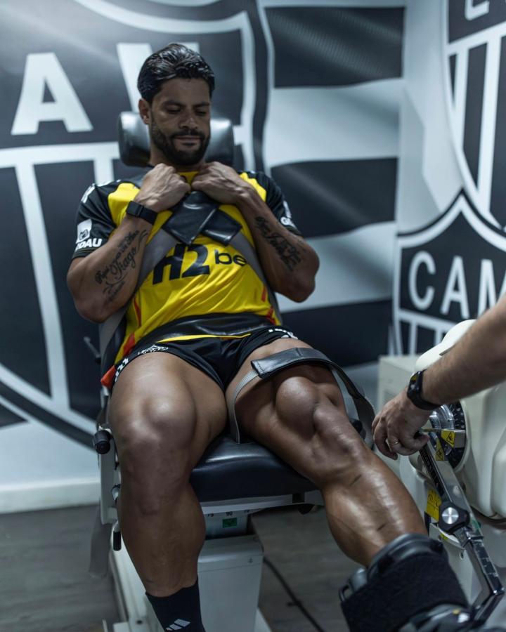 胡尔克接受下肢力量检测,肌肉清晰可见力量感十足