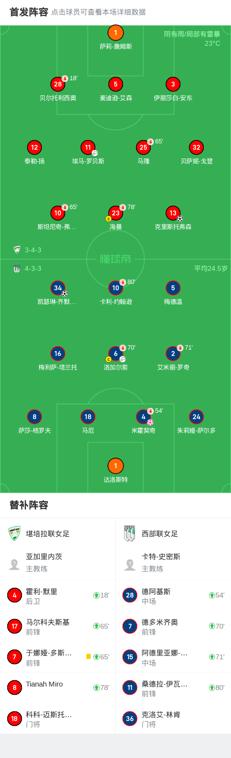 第15分钟,西部联女足球员洛加尔索助攻凯瑟琳-齐默尔曼打入一球。