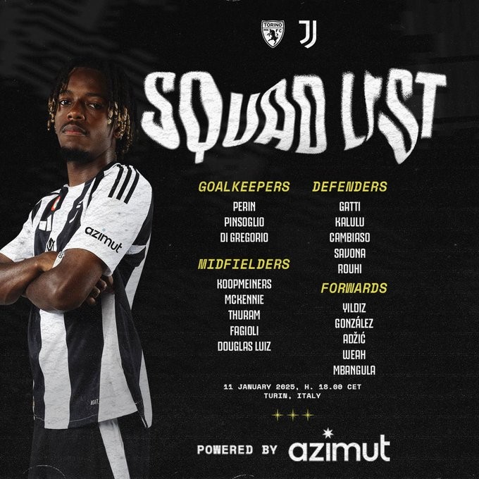 把近段时间明天凌晨1点,尤文将迎来意甲第20轮客场对阵都灵的比赛,赛前,尤文官方公布了本场比赛的大名单。