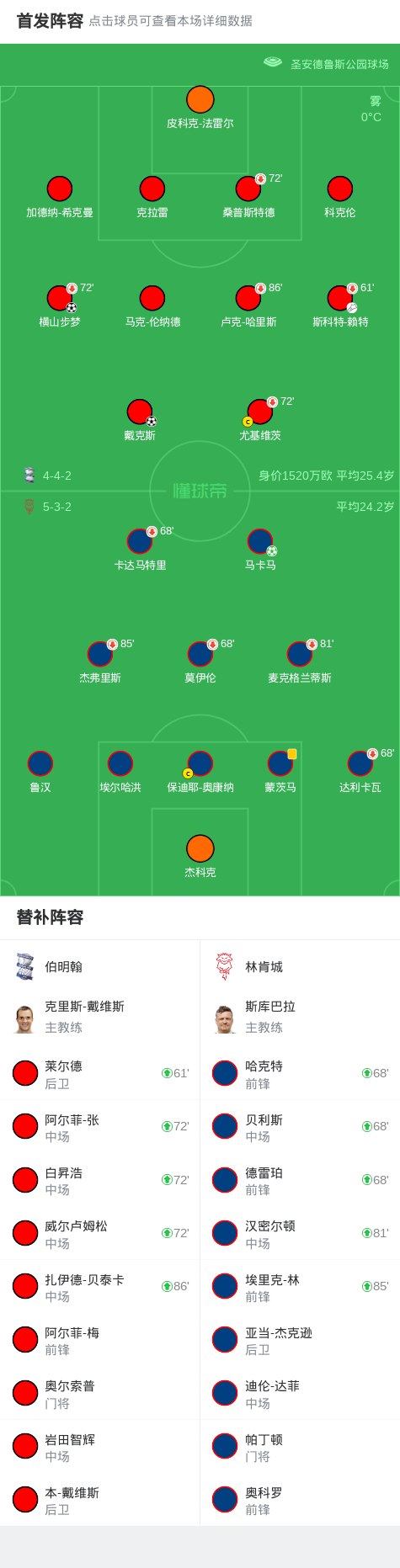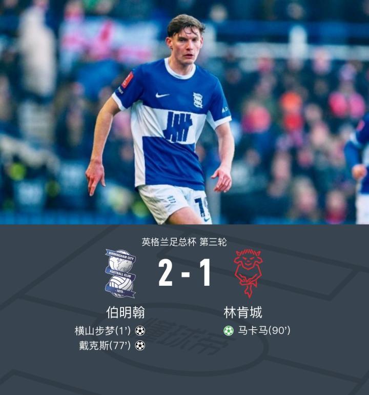 伯明翰2-1林肯城晋级下一轮,横山步梦闪击,戴克斯建功