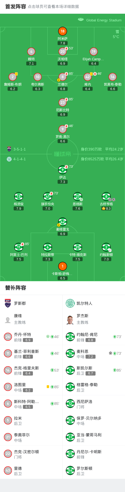 北京时间1月11日苏格兰顶级联赛 联赛 第23轮,罗斯郡主场对阵凯尔特人。罗斯郡乔丹-怀特破门。凯尔特人古桥亨梧梅开二度,麦科恩破门,恩格斯破门。最终比分罗斯郡 1-4 凯尔特人。