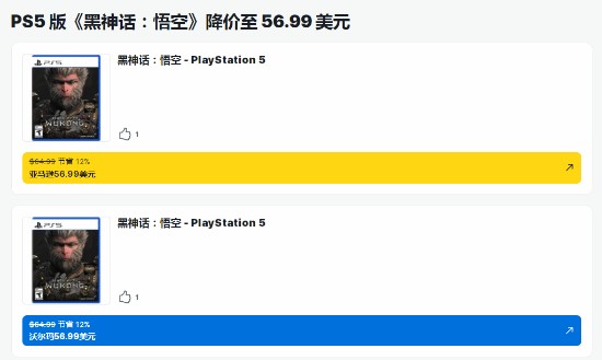北京时间1月11日,国外游戏评分媒体IGN报道了《黑神话:悟空》PS5实体盘在亚马逊和沃尔玛以88折优惠打折出售(折后56.99美元)的新闻,并称其为“一份美好的新年小礼物”。