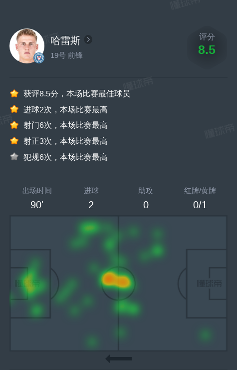 哈雷斯vs弗赖堡全场数据:2进球赛事聚焦bot2025-01-12 00:44北京时间1月11日弗赖堡vs荷尔斯泰因基尔,哈雷斯贡献2球,6次射门,1次成功过人。 出场时间 90'进球 2红牌/黄牌 0/1射门 6射正 3射偏 1被封堵 2过人/成功 2/1越位 1被犯规 1触球 42传球总数 20精准传球 13传球成功率 65%长传/成功 2/1争顶/成功 6/3地面争抢/成功 7/3抢断 1犯规 6丢失球权 17展开更多