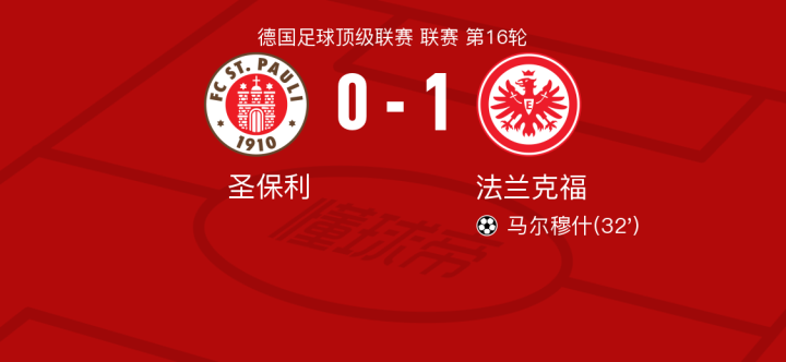 圣保利vs法兰克福球员评分:特拉普7.9分,詹姆斯-桑兹6.2分