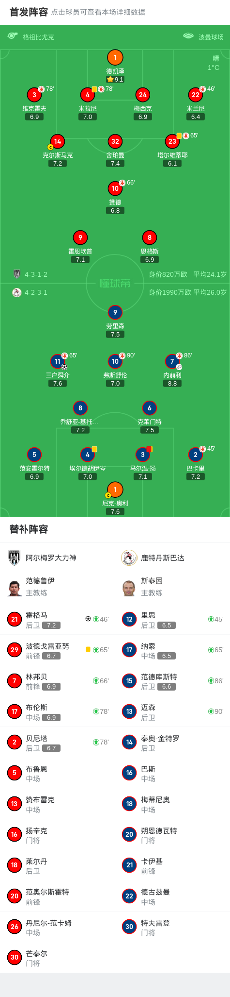 阿尔梅罗大力神1-1鹿特丹斯巴达,三户舜介打破僵局,霍格马扳平
