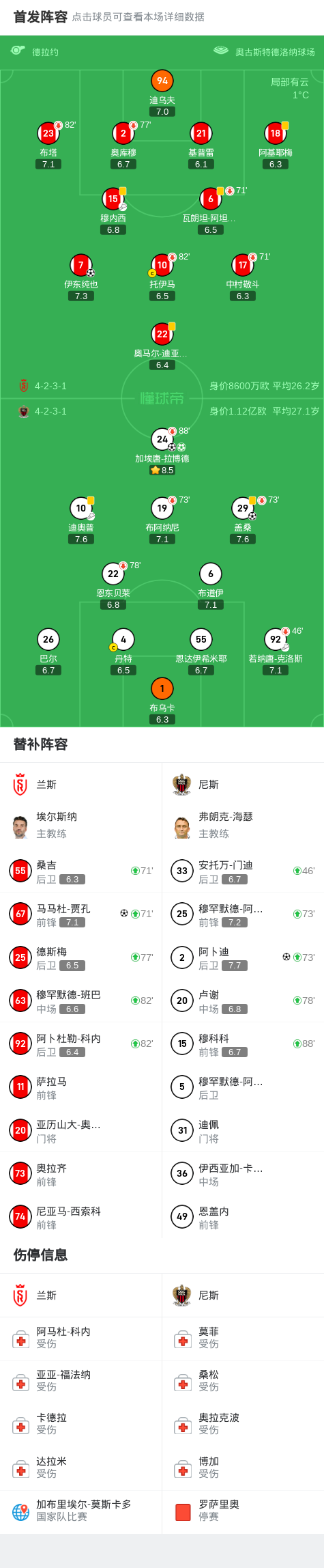 尼斯4-2兰斯,拉博德双响,盖桑破门,伊东纯也破门难救主