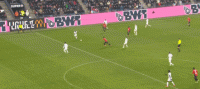 第43分钟,卡利穆恩多将功补过迎球推射破门,雷恩1-0!