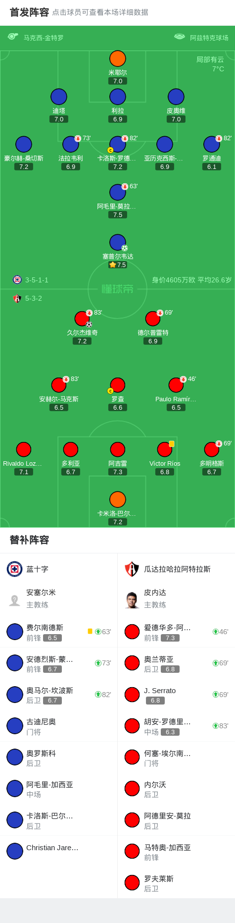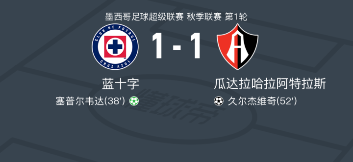 蓝十字1-1瓜达拉哈拉阿特拉斯,塞普尔韦达破僵,久尔杰维奇救主