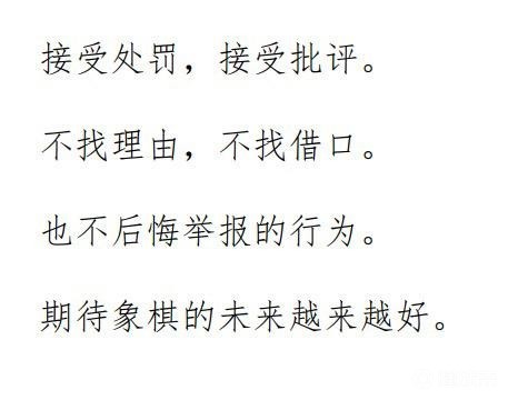 对此,党斐本人回应表示:“接受处罚,接受批评。不找理由,不找借口。也不后悔举报的行为,期待象棋的未来越来越好。”