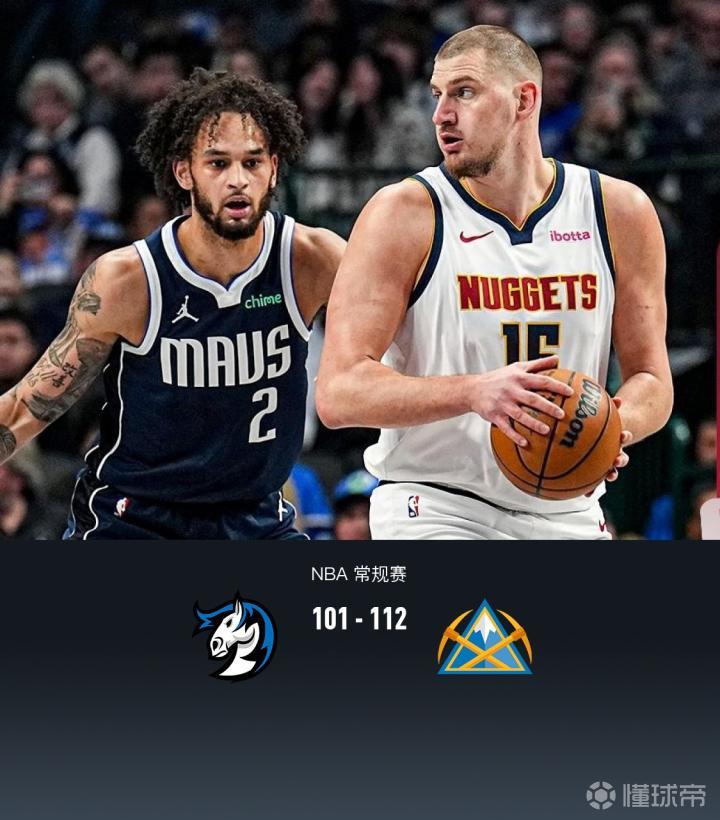 第四节独行侠丁威迪拿下6分,掘金贾马尔-穆雷拿下8分,最终独行侠101-112不敌掘金