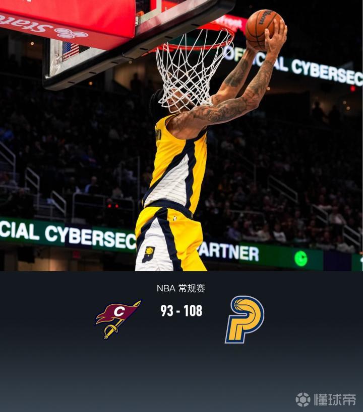 第四节骑士达里厄斯-加兰拿下8分,步行者内姆布哈德拿下11分,最终骑士93-108不敌步行者