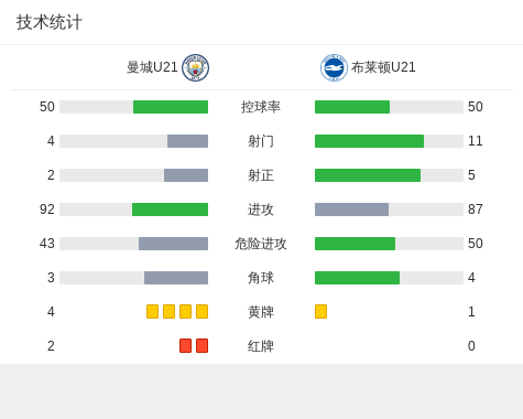 下半场补时第8分钟,曼城U21球队雅各布-赖特吃到第二张黄牌。