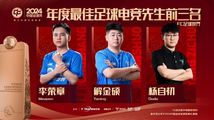 2024年度最佳足球电竞先生(FC足球世界)前三名:李荣章、解金硕、杨自初