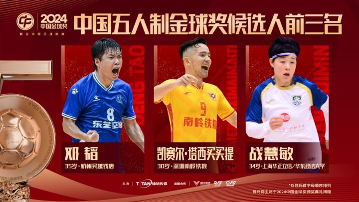在2024中国五人制金球奖的评选中,杭州吴越钱唐俱乐部的老将邓韬、深圳南岭铁狼俱乐部的射手凯赛尔以及上海华正立信女足的核心战慧敏入围前三,这意味着本奖项将诞生一位新科得主。