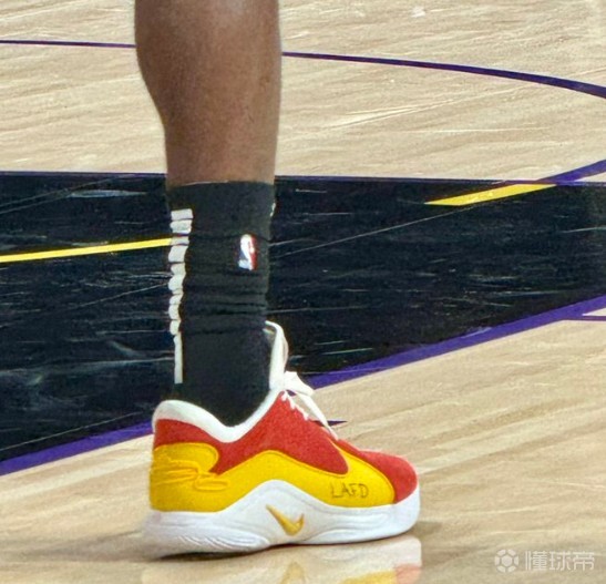 暖心,詹姆斯球鞋侧面写有L.A.F.D字样致敬洛杉矶消防局