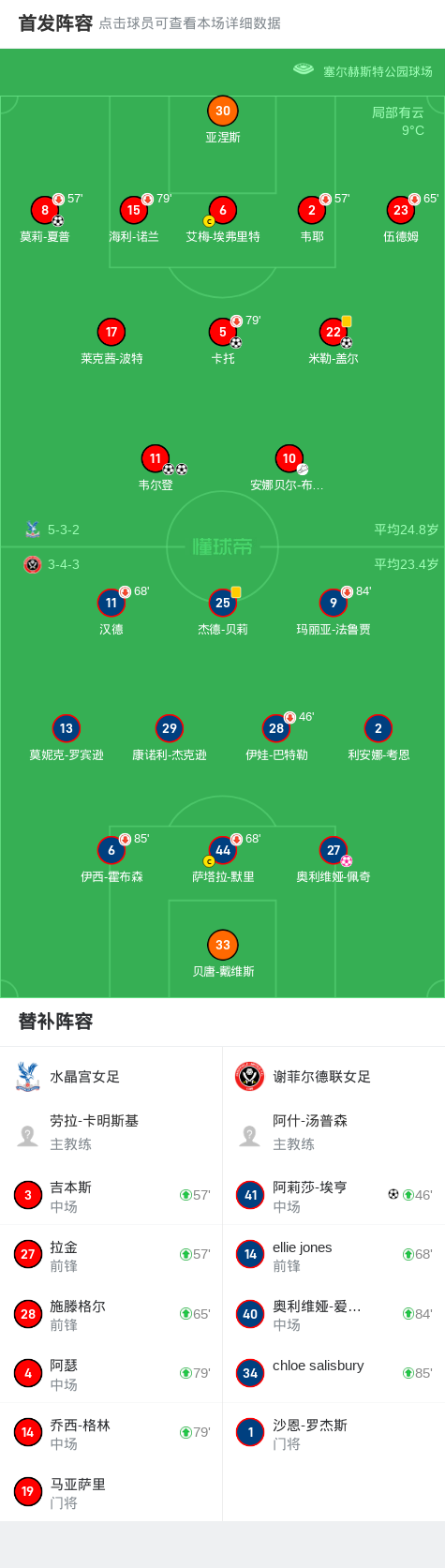 水晶宫6-1横扫谢菲尔德联女足,韦尔登梅开二度,卡托破门