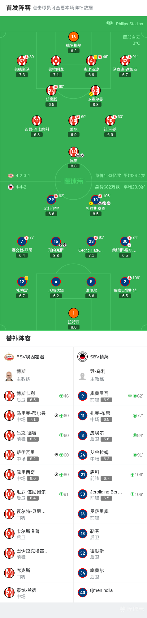 荷兰杯埃因霍温5-4SBV精英晋级8强,佩里西奇加时赛建功