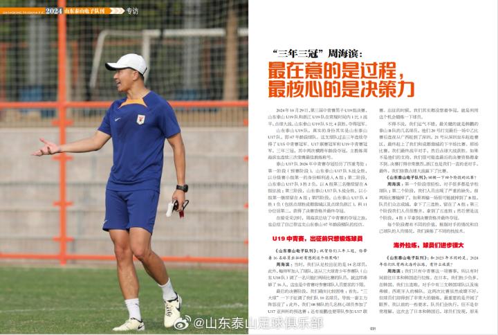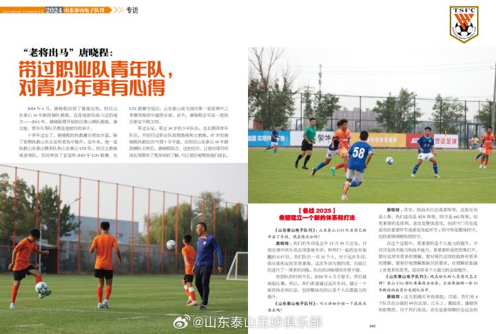 《山东泰山电子队刊》青训专刊来了山东泰山足球俱乐部 @懂球帝2025-01-15 10:10《山东泰山电子队刊》青训专刊来了,欢迎点击链接阅读:http://t.cn/A6urdouy 本期队刊,我们将全面解读山东泰山青训体系高度一体化、精英梯队和越级参赛三大战略,同时带来巴西体育队前来中国集训的相关内容。也为您准备好了青训七大专访:韩鹏、周海滨、崔鹏、唐晓程、史松宸、唐瑞和岳瑞杰(汪强的展开更多