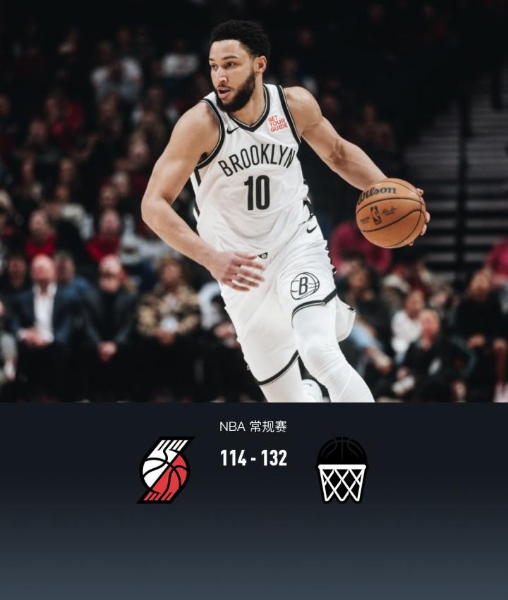 第四节开拓者谢登-夏普拿下8分,篮网拉塞尔拿下7分,最终开拓者114-132不敌篮网
