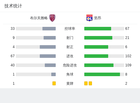 第20分钟,莫捷斯基远射破门,里昂0-1布尔关雅略