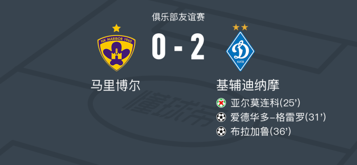 在一场俱乐部友谊赛中,马里博尔迎战基辅迪纳摩。比赛中,基辅迪纳摩的爱德华多-格雷罗和布拉加鲁各自贡献了一粒精彩的进球。尽管基辅迪纳摩曾错失一次点球机会,但他们依然凭借出色的表现以2比0战胜对手,取得了比赛的胜利。
