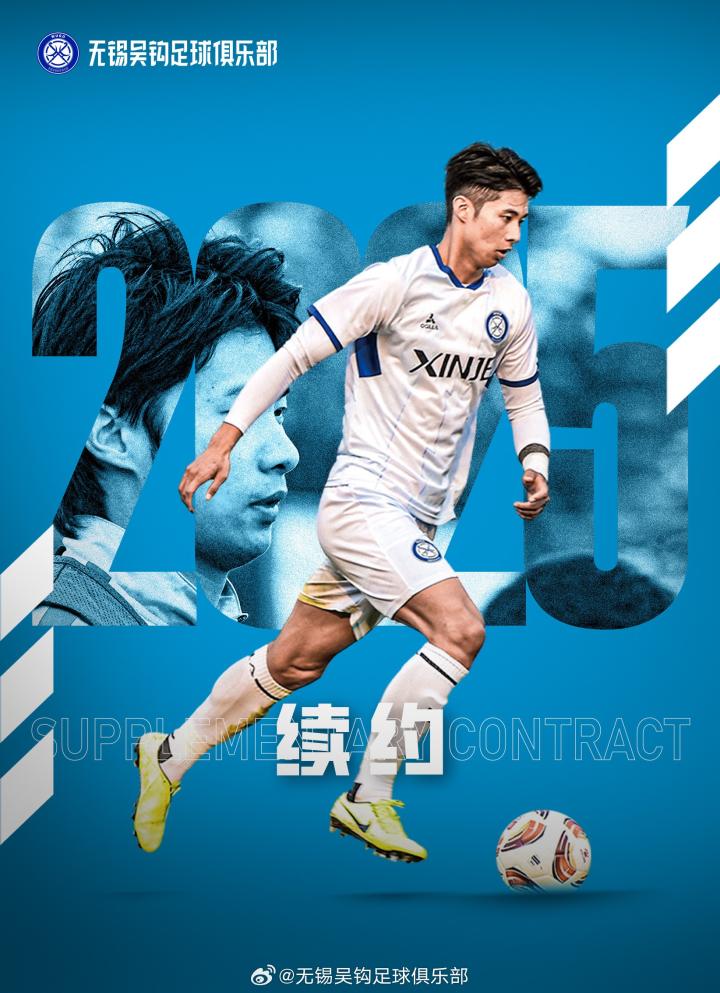 我们在此郑重宣布,经双方协商一致,无锡吴钩足球俱乐部与球员同乐完成续约。2025赛季,他将继续为无锡而战!