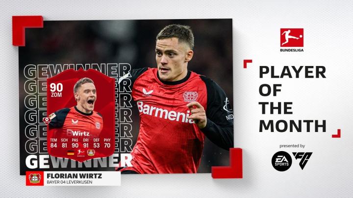 3场比赛3球3助,官方:维尔茨当选德甲12月最佳球员