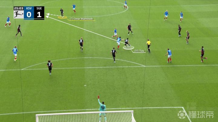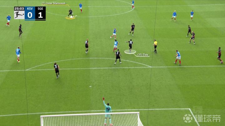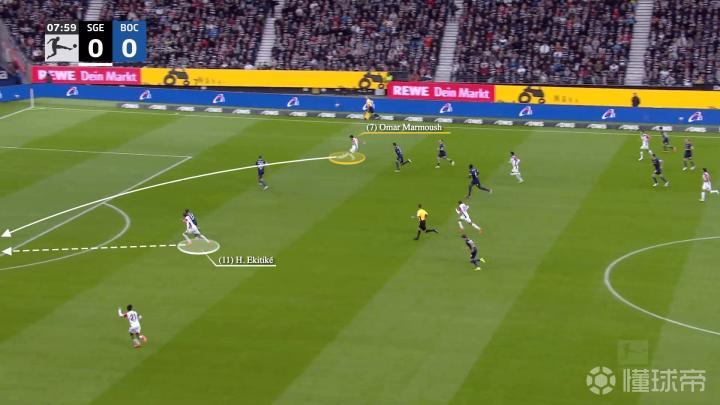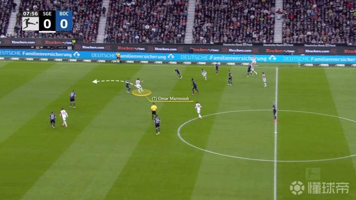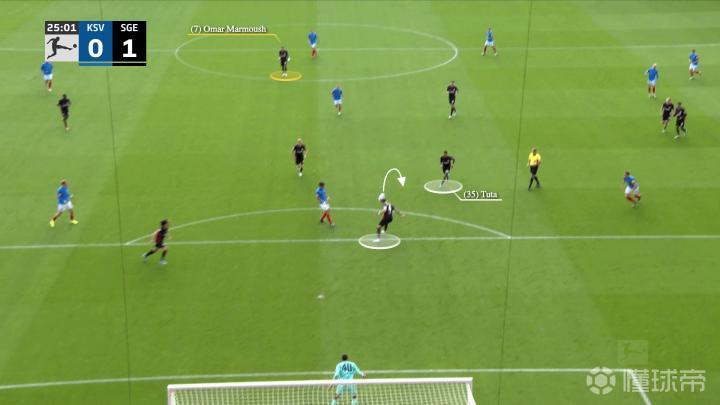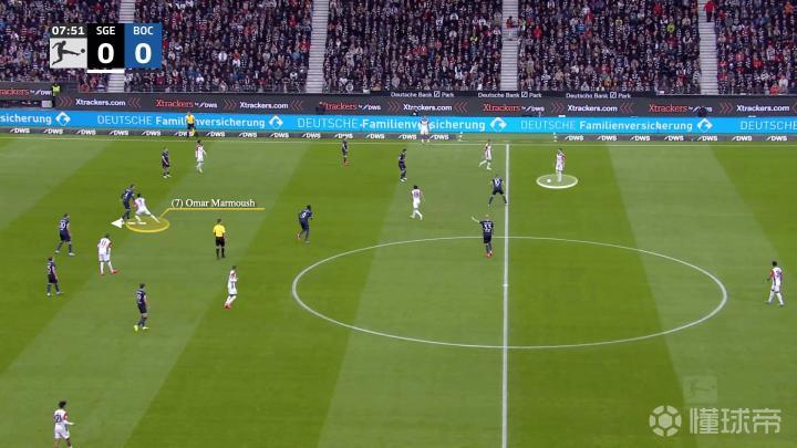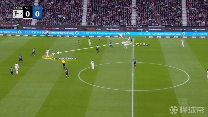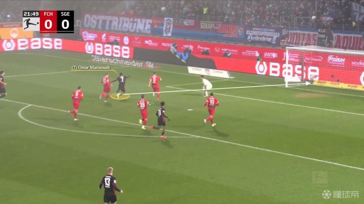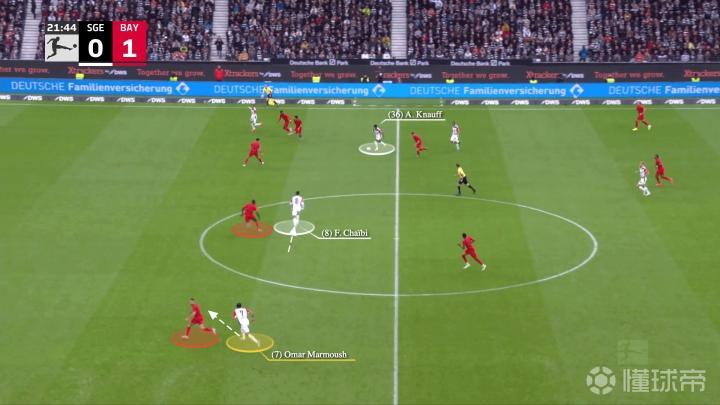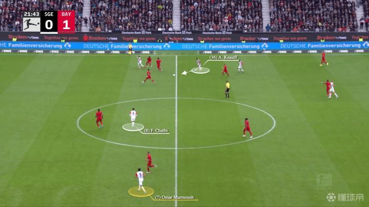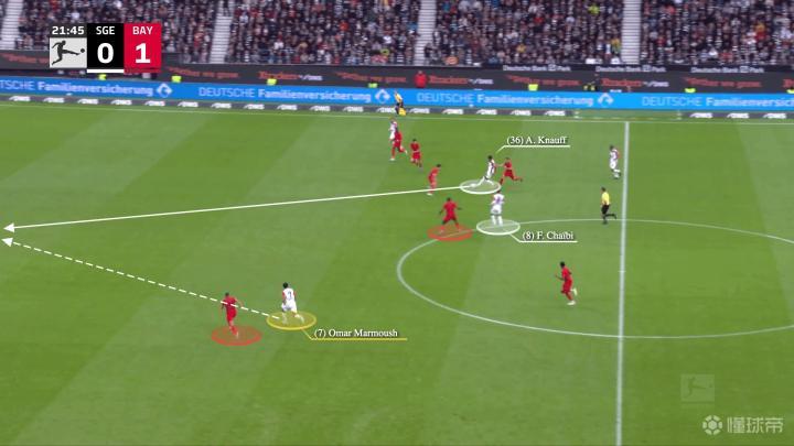一开始,法兰克福在反击,左边锋沙伊比与马尔穆什交换了位置,当右边锋克瑙夫抢到球时……