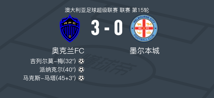 奥克兰FC3-0大胜墨尔本城,马克斯-马塔破门,派纳克尔建功