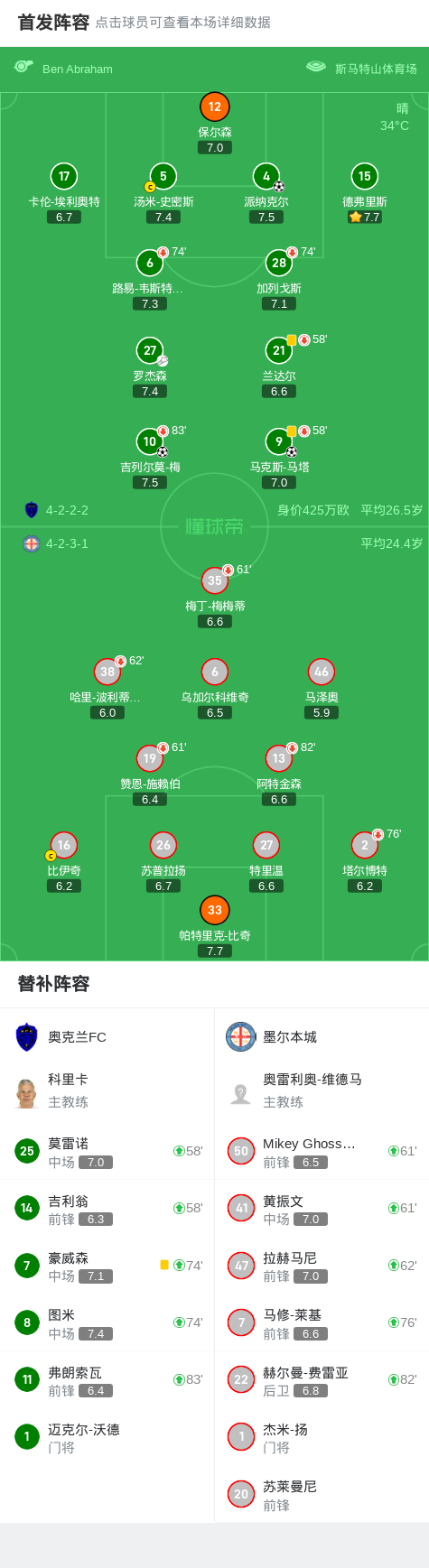 第32分钟,奥克兰FC球员罗杰森助攻吉列尔莫-梅打入一球。