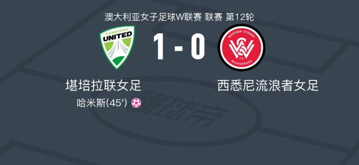 在澳大利亚女子足球W联赛第12轮的比赛中,堪培拉联女足坐镇主场迎战西悉尼流浪者女足。比赛中,西悉尼流浪者的哈米斯不慎将球打入自家球门,成为比赛的关键转折点。最终,堪培拉联女足凭借这一进球,以1比0战胜了西悉尼流浪者女足。