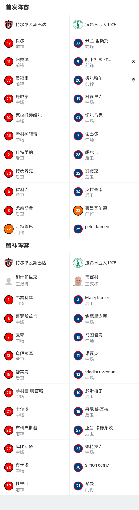 波希米亚人1905 2-0特尔纳瓦斯巴达,德尔哈尔破门,阿卜杜拉-优素福-希拉勒锁定胜局