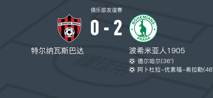 在一场俱乐部友谊赛中,特尔纳瓦斯巴达迎战波希米亚人1905。比赛中,波希米亚人1905的德尔哈尔率先打破僵局,随后阿卜杜拉-优素福-希拉勒再下一城,帮助球队扩大领先优势。最终,波希米亚人1905以2比0战胜特尔纳瓦斯巴达。