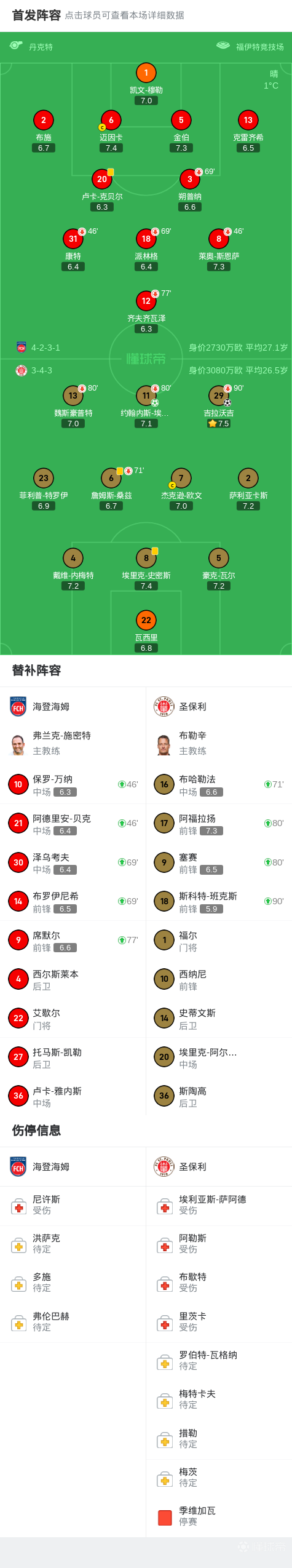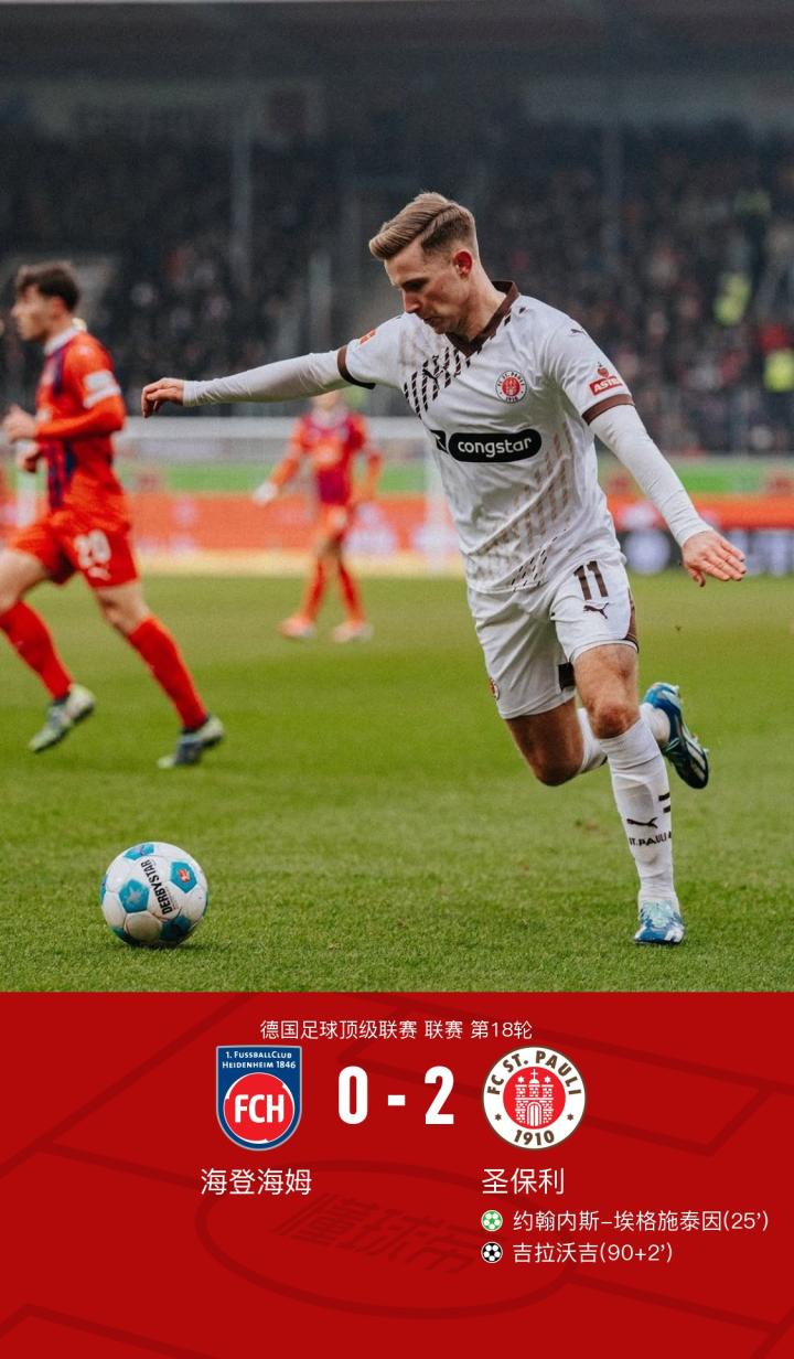 圣保利客场2-0海登海姆结束三连败,埃格施泰因点射