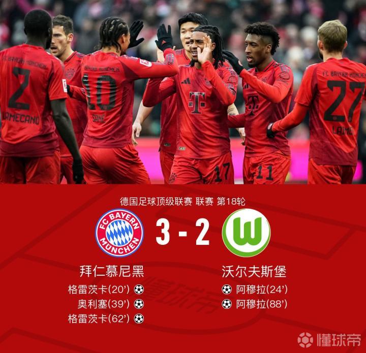 剑南春|拜仁3-2沃尔夫斯堡,格雷茨卡双响,奥利塞传射建功